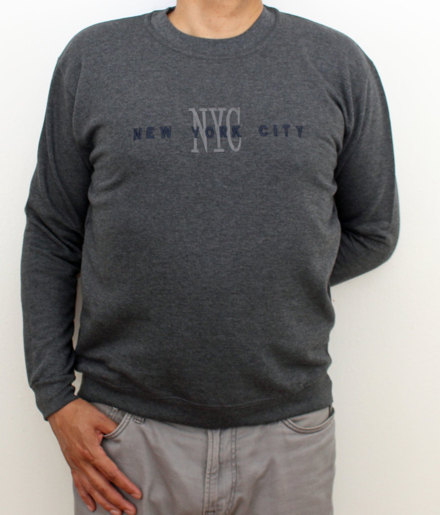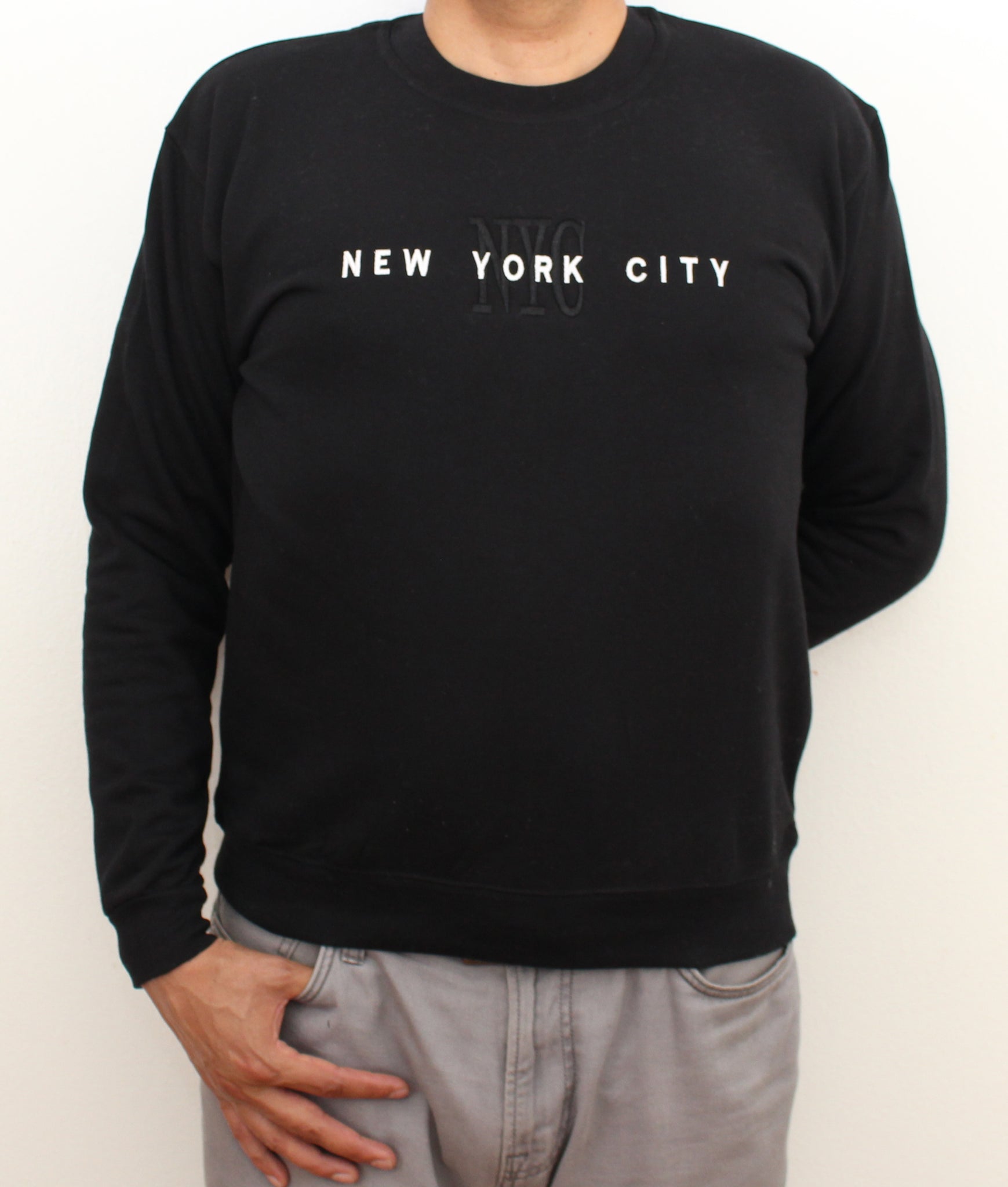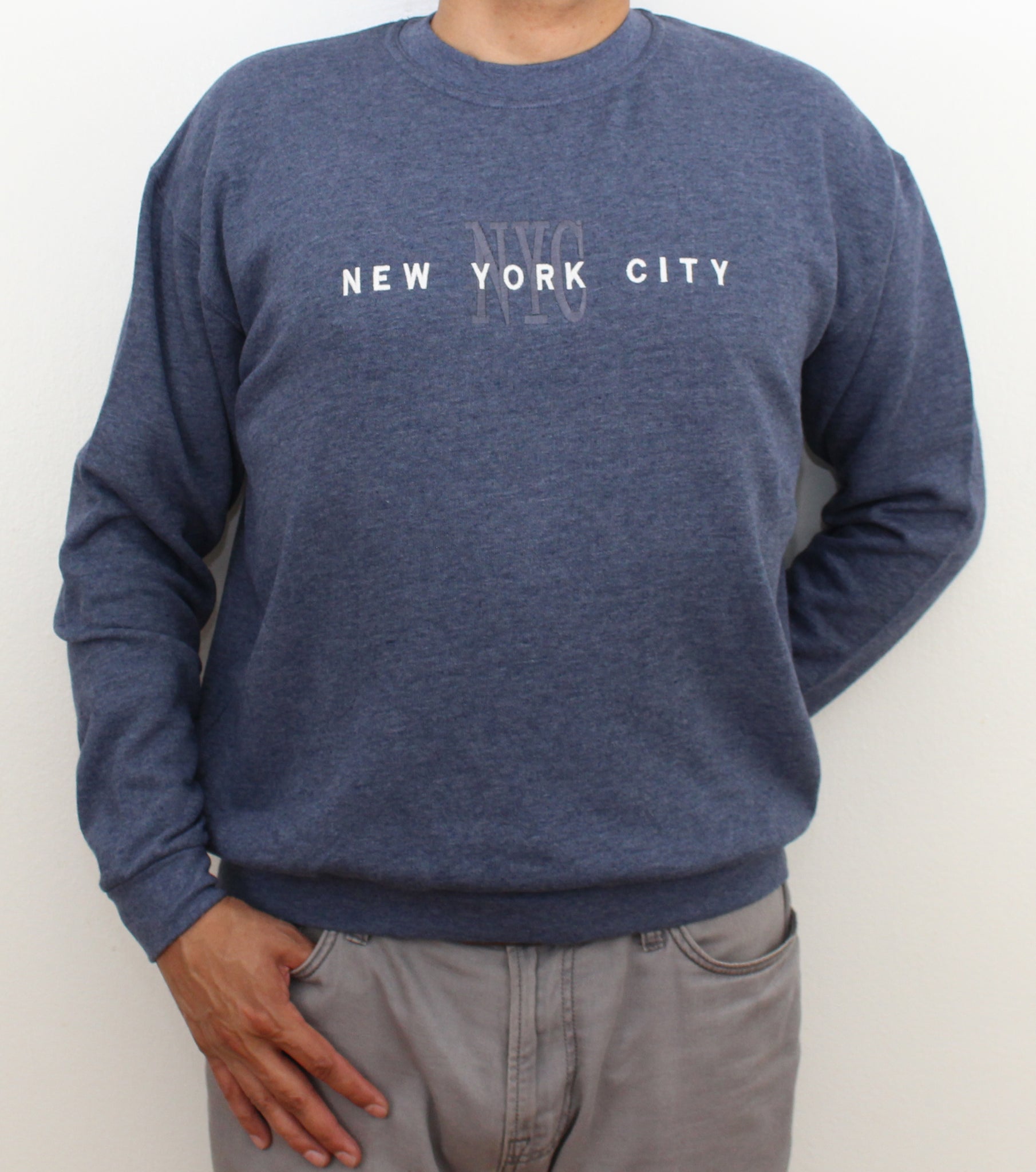 Embroidered Sweat-Shirt. This soft Sweat-Shirt features NEW YORK CITY NYC embroidered on the center front. Having Rib Cuffs and Bottom Band for enhanced stretch .
