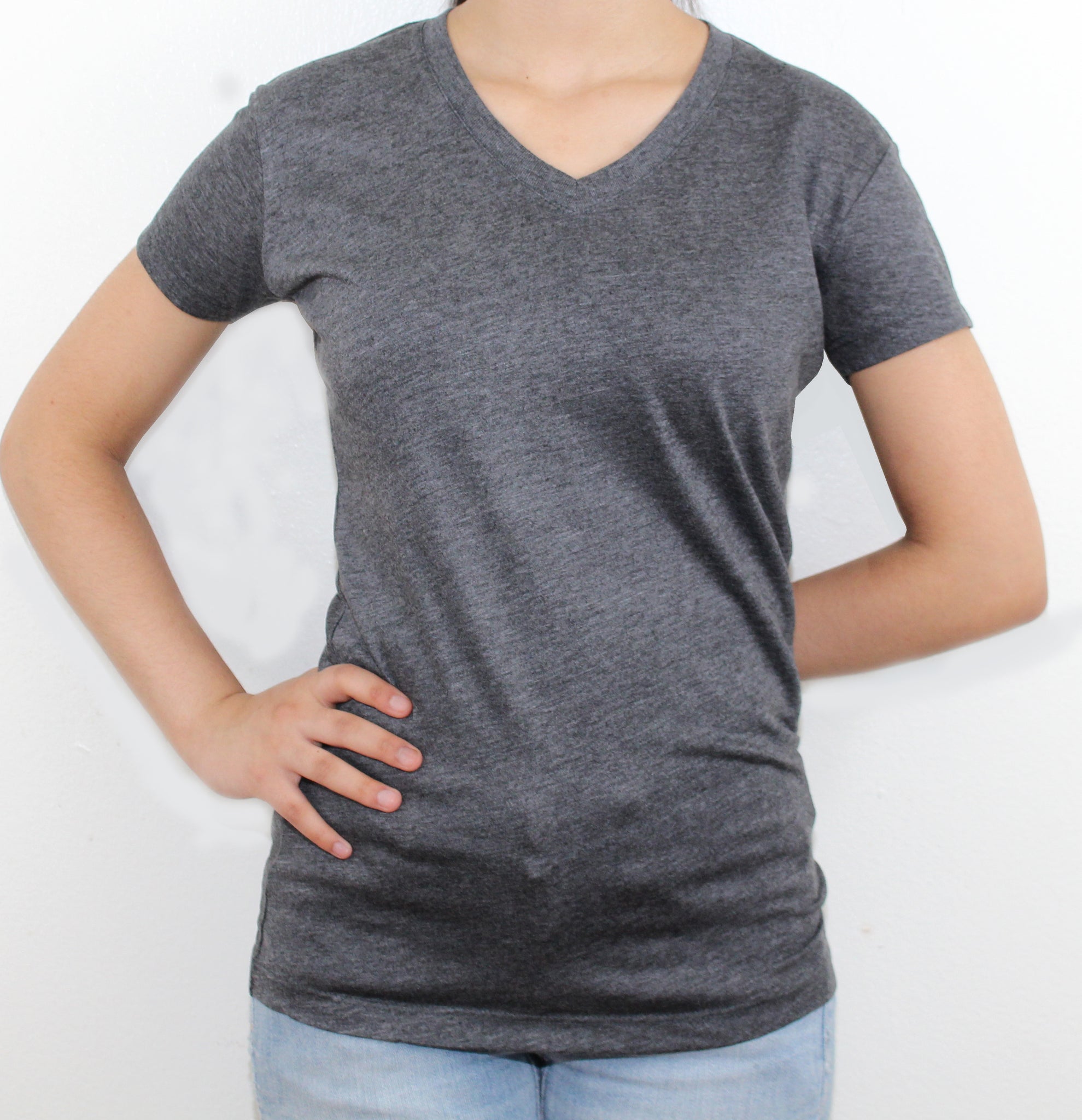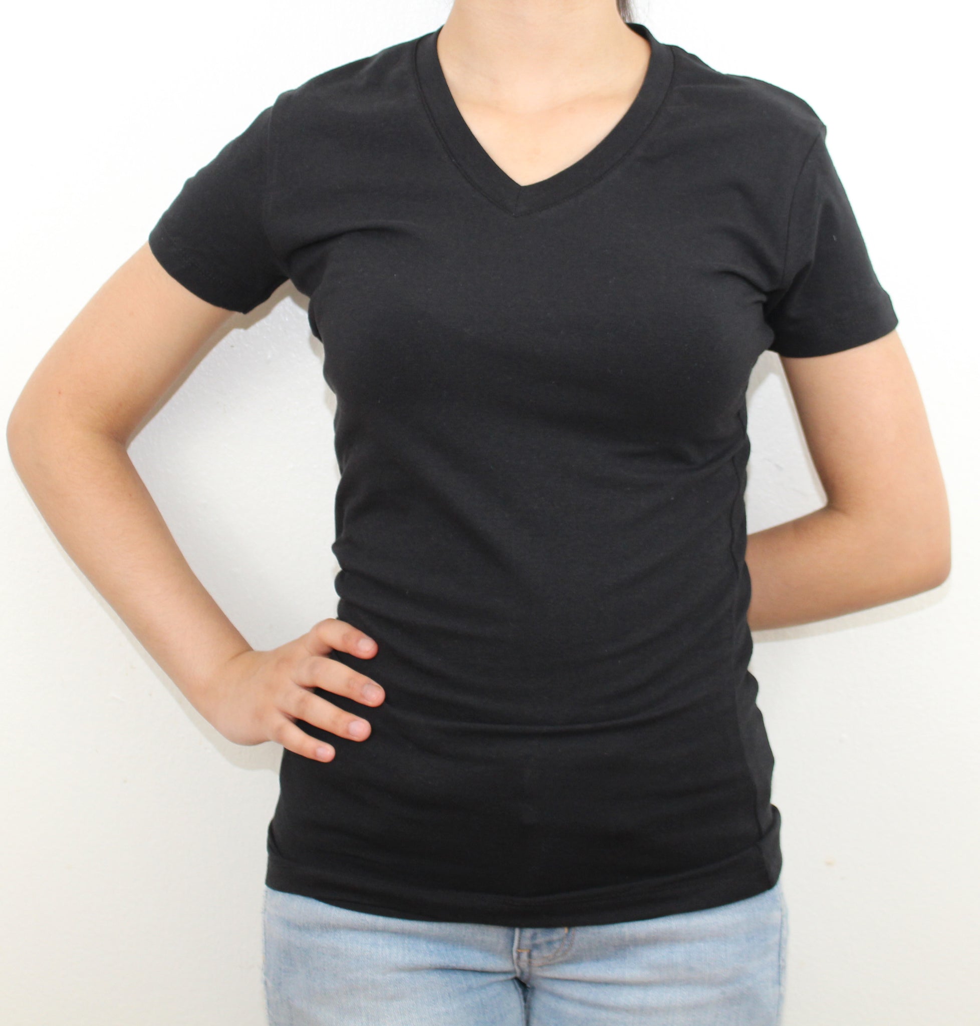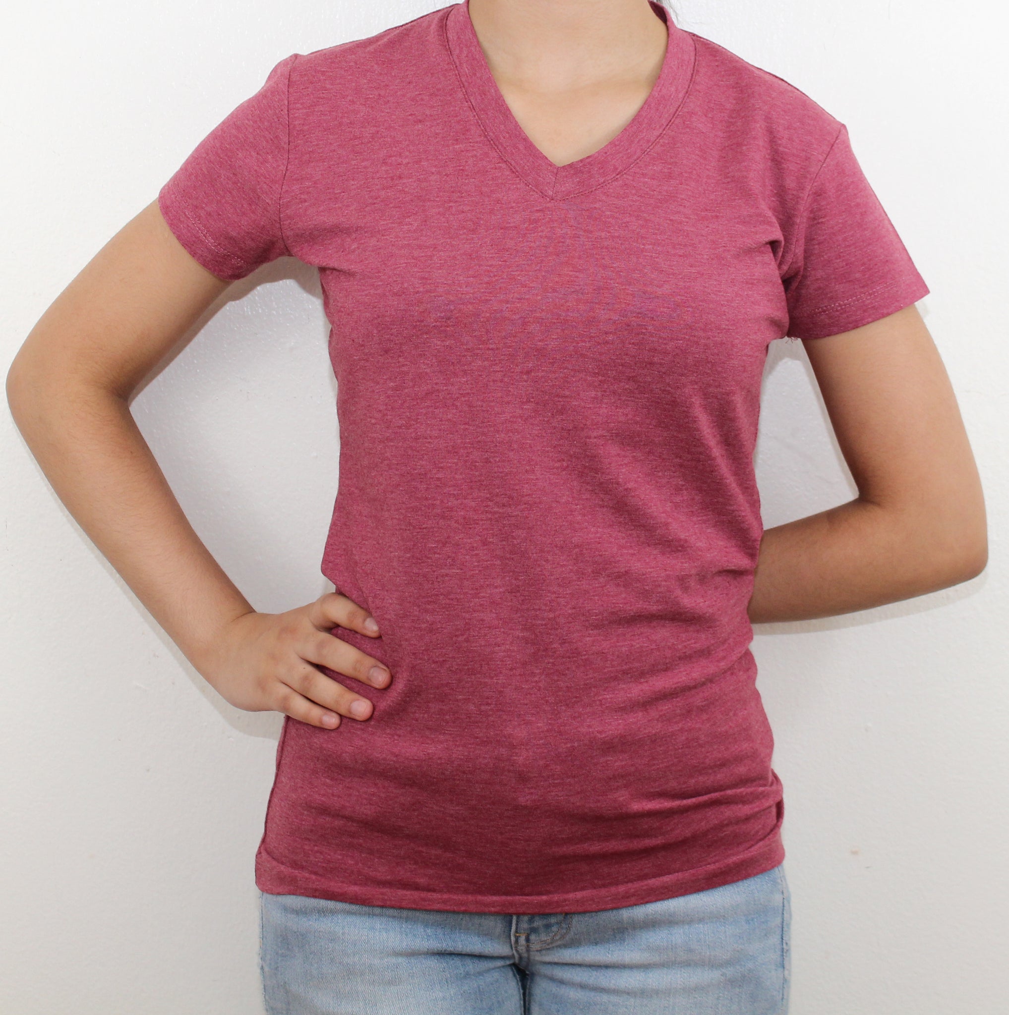 Ladies V.Neck T-Shirt. It provides just enough stretch while keeping a feminine shape. Different Kinds of sizes and colors are available.
