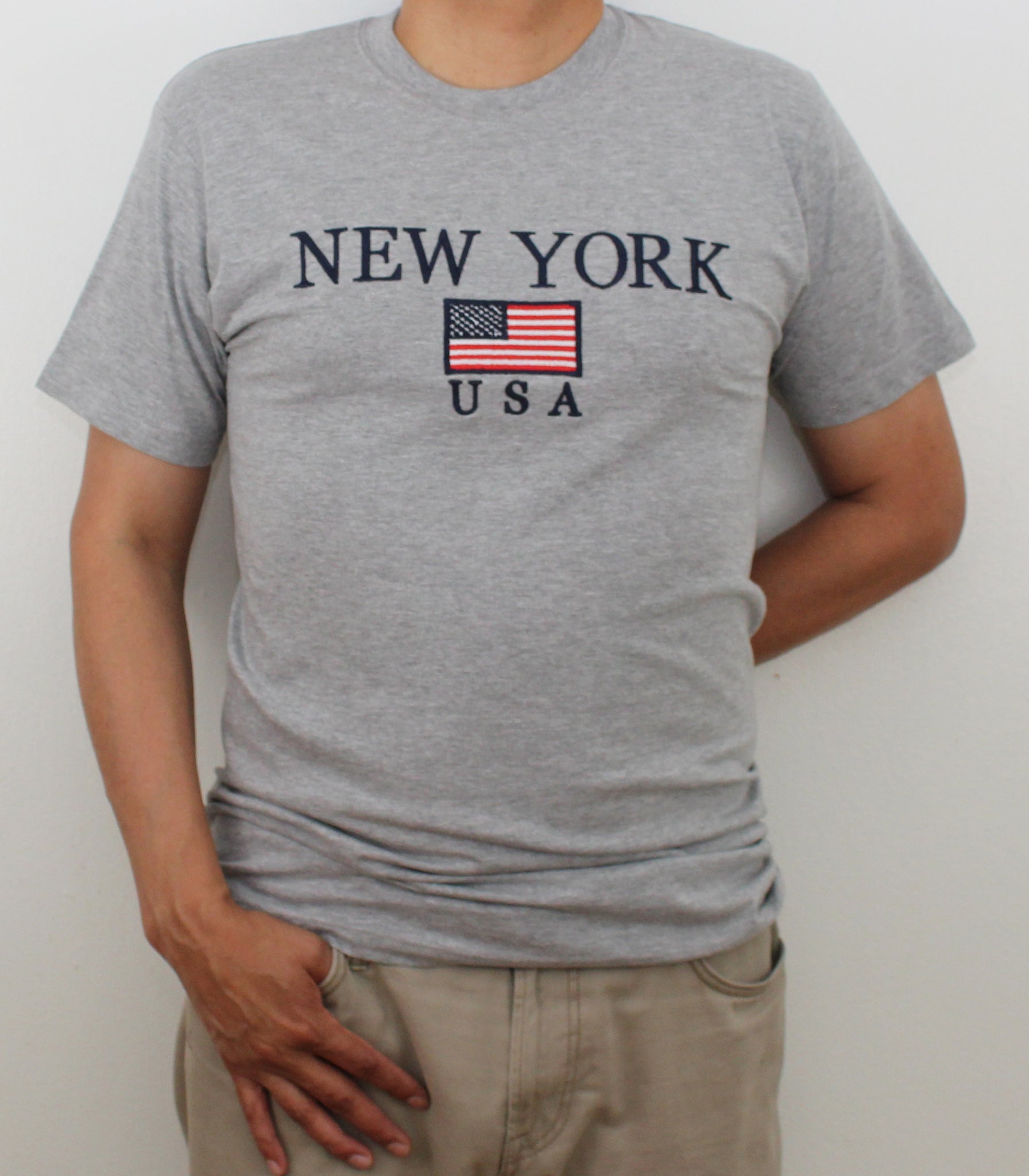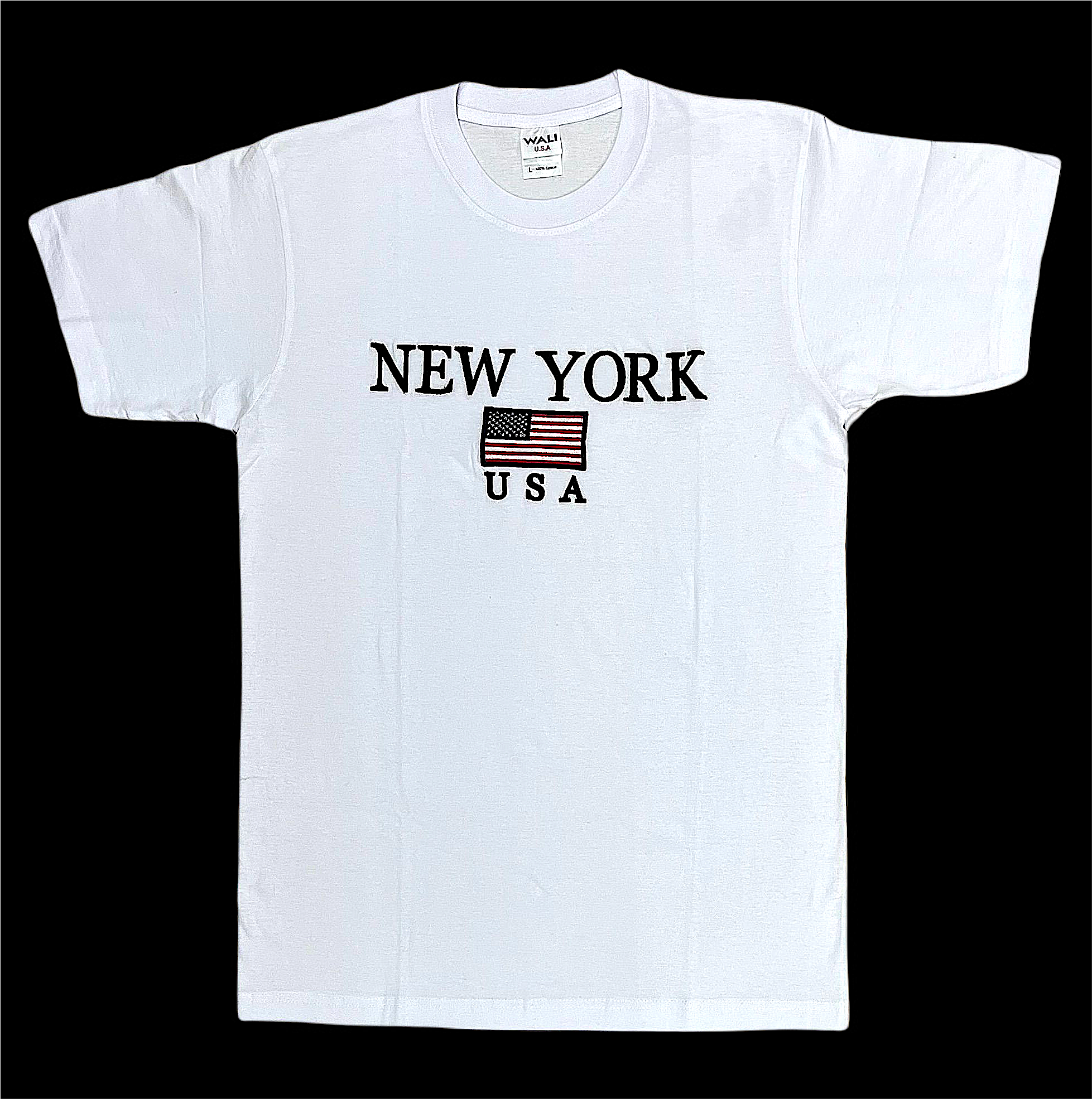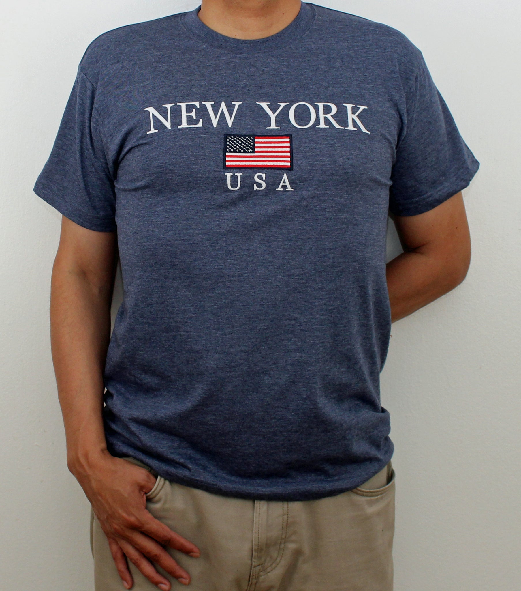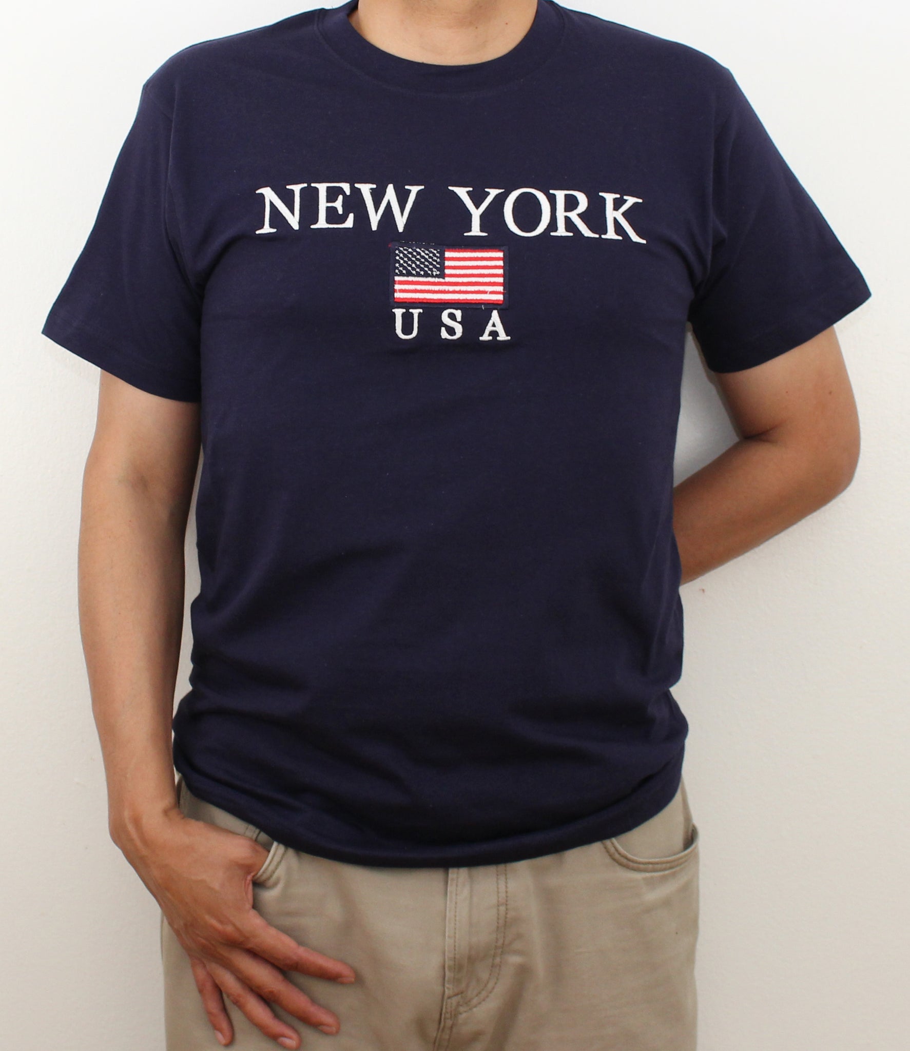 Embroidered Crew Neck T-Shirt. This Comfortable, High Quality Cotton T-Shirt features “New York USA” and the American Flag Embroidered on the center front.