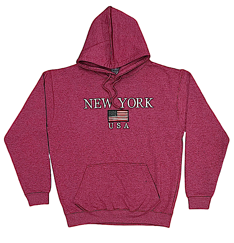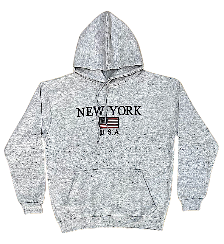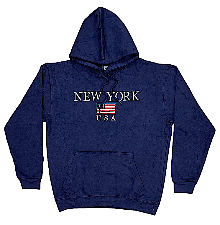 Kids Embroidered pullover hoodie. This soft Hoodie features “New York USA” and the American Flag Embroidered on the center front. It has Kangaroo pocket and Drawstring Hood.